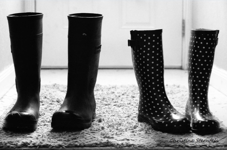 It’s snowing today. I grabbed my camera to take pictures of winter scenes and on my way out the door I stumbled upon this. What a perfect picture of my daughter’s and husband’s boots. They were playing in the snow earlier today…