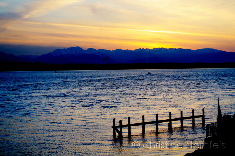 Thank you Lorraine! This picture was taken in Shilshole Bay in Seattle. The purple mountain majesty in the background is the Olympic mountain range.