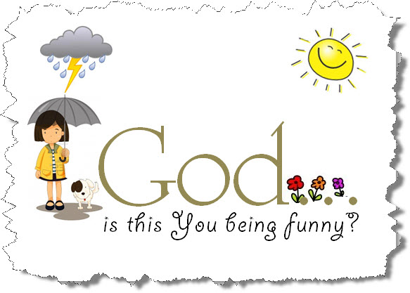I just wanted to give you an update on my upcoming book “God… is this you being funny?”  I’ve been working on this for months now and between stuff and procrastination – I’m about half way there.  At least now I have a title and I’m toying with some ideas on a cover, like the one I have here.  What do you think?  Does anybody know a cartoon artist that can help me with this cover?